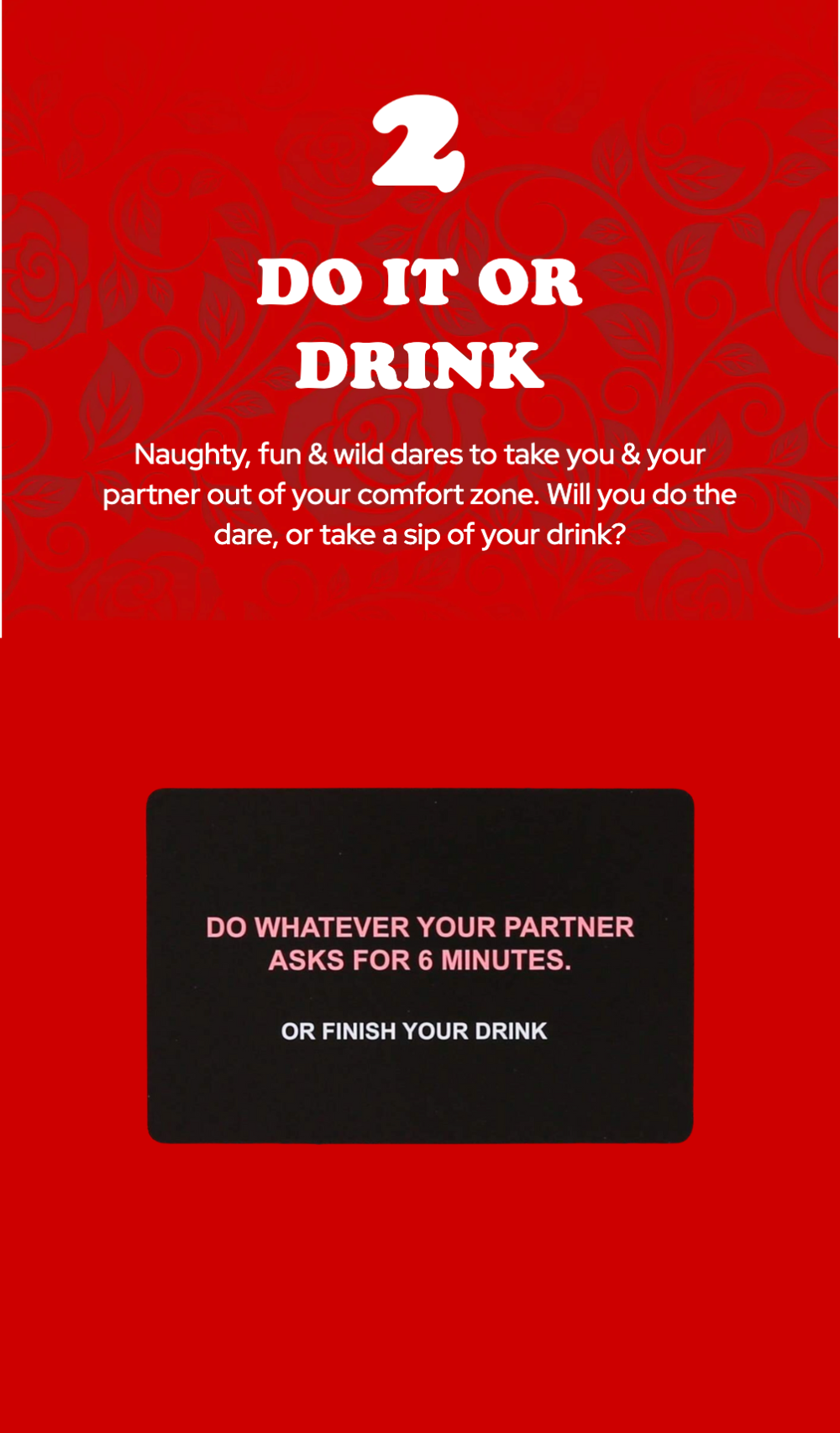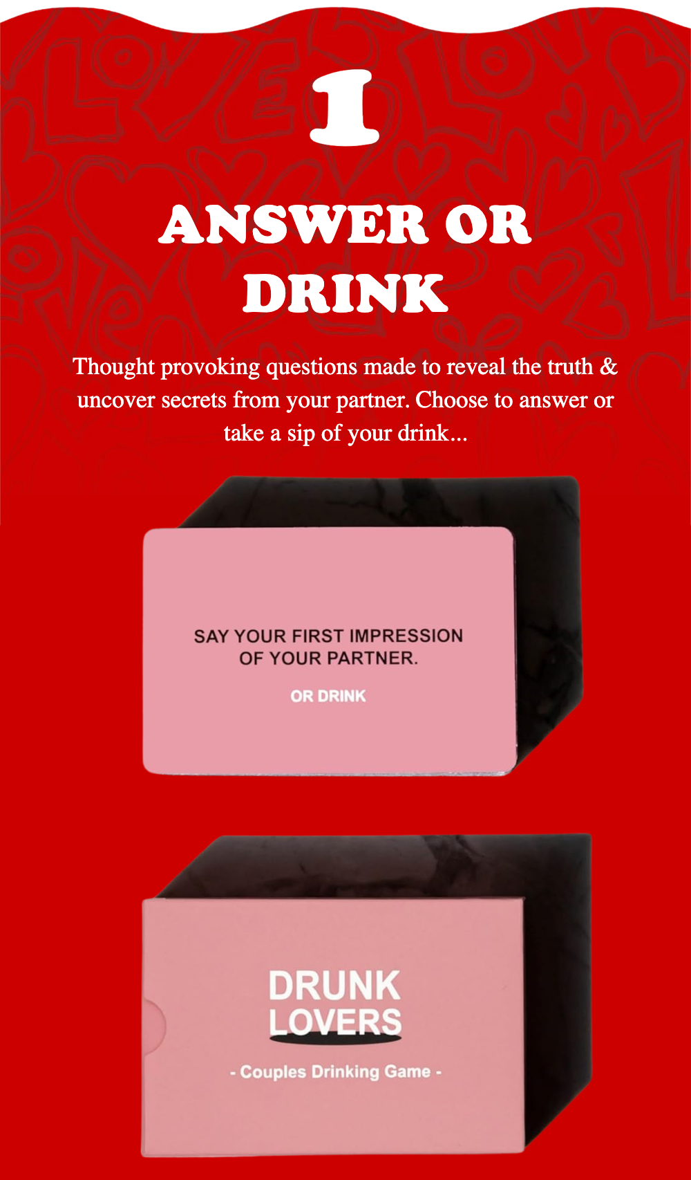 The ultimate date night game designed to spark deep convos, get naughty & drunk with your partner.